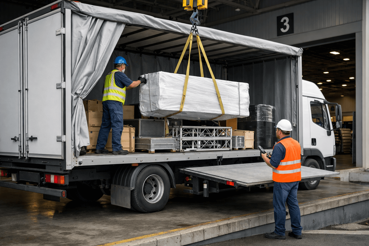 ─ Задействовали тентованный грузовик с возможностью верхней погрузки.